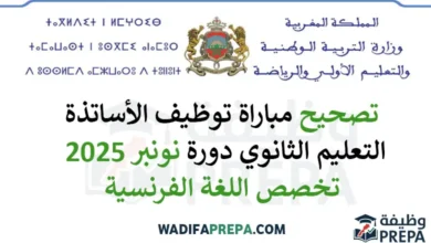موضوع وتصحيح اختبار تخصص اللغة الفرنسية – التعليم الثانوي – دورة نونبر 2025 في إطار مواكبة مباريات التعليم، نضع بين…